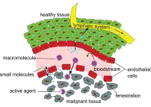 - ↑ Iyer, Arun K.; Khaled, Greish; Fang, Jun; Maeda, Hiroshi (2006-09-01). "Exploiting the enhanced permeability and retention effect for tumor targeting". Drug Discovery Today. 11 (17–18): 812–818. doi:10.1016/j.drudis.2006.07.005. PMID 16935749.