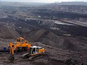 Situated 55 km west of Jelenia Góra, 80 km east of Dresden, Germany, and 20 km northwest of Liberec, Czech Republic, the Turów mine forms a part of an area widely known as the "Black Triangle" due to its past heavy industrial pollution, covering portions of eastern Germany, southwestern Poland and northern Czech Republic.[2] The Turów mine, operated by Polska Grupa Energetyczna, represents one of the largest lignite reserves in Poland, with an estimated reserve of 760 million tonnes of coal.[3] The annual coal production of Turów is around 27.7 million tonnes.