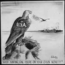 The 99th was finally considered ready for combat duty by April 1943. It shipped out of Tuskegee on 2 April, bound for North Africa, where it joined the 33rd Fighter Group and its commander, Colonel William W. Momyer. Given little guidance from battle-experienced pilots, the 99th's first combat mission was to attack the small strategic volcanic island of Pantelleria, code name Operation Corkscrew, in the Mediterranean Sea to clear the sea lanes for the Allied invasion of Sicily in July 1943. The air assault on the island began 30 May 1943. The 99th flew its first combat mission on 2 June.[38] The surrender of the garrison of 11,121 Italians and 78 Germans[39] due to air attack was the first of its kind.[40]