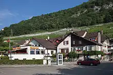 ![]() Twann village with Lake Biel/Bienne and St. Peter's Island in background | |