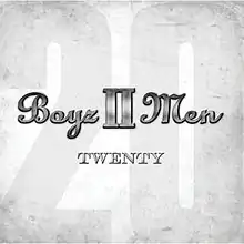 Twenty is the thirteenth studio album by American R&B group Boyz II Men. The album was released in the United States on October 25, 2011. The first single was "More Than You'll Ever Know" featuring Charlie Wilson. As of September 2011, the single was the most added song to radio sets on urban adult contemporary radio stations.[4] The album featured 13 new material songs and nine rerecorded Boyz II Men classics. It was produced Tim & Bob, Babyface, Jimmy Jam and Terry Lewis, and Teddy Riley.[5] The album debuted at number 20 on the Billboard 200, selling 18,400 copies in its first week.[6]