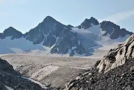 Twin Peaks (13,191 ft (4,021 m)) is located in the Wind River Range in the U.S. state of Wyoming.[3] Twin Peaks is the 20th highest peak in Wyoming.[4] Twin Peaks is in the Bridger Wilderness of Bridger-Teton National Forest and is .58 mi (0.93 km) southwest of Mount Woodrow Wilson and about the same distance southeast of Split Mountain. Mammoth Glacier flows from the north slopes of the peak while the smaller Twins Glacier flows to the southeast.[3]