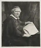 ![]() | Preparatory Oil Sketch for the Etched Portrait of Lieven Willemsz van Coppenol | In or before 1658 | Oil on panel | 35.6 x 28 | Metropolitan Museum of Art, New York | 260 | See etching B283 ![]() |