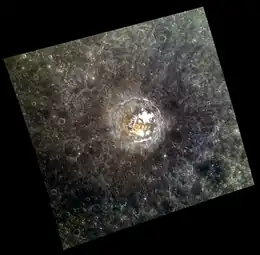 - ↑ Denevi, B. W., Ernst, C. M., Prockter, L. M., and Robinson, M. S., 2018. The Geologic History of Mercury. In Mercury: The View After MESSENGER edited by Sean C. Solomon, Larry R. Nittler, and Brian J. Anderson. Cambridge Planetary Science. Chapter 6, Table 6.4.