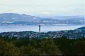 Tyholttårnet, or Tyholt Tower, as seen from Lian. Trondheim Fjord in the background.