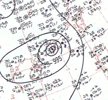![]() Surface weather analysis of Typhoon Mary near peak intensity | |