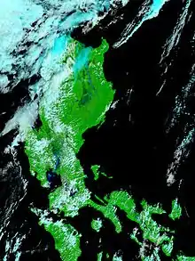 The first Philippine provinces to be impacted by the typhoon were Albay and Catanduanes, which suffered power outages after strong winds tore down power lines.[22][23] One person was killed in Virac, Catanduanes after being electrocuted by a felled power line.[24] In order to prevent more widespread outages, electrical service in some locations was deliberately shut down. Landslides triggered by Nanmadol in Aurora killed 25 people.[25] On the Bicol Peninsula, eight fatalities occurred due to drowning, electrocution, or hypothermia.[26]