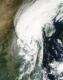 Typhoon Wipha, known in the Philippines as Typhoon Goring, was the strongest typhoon to threaten the Chinese coastline since Typhoon Saomai in August 2006. Forming out of a tropical disturbance on September 15, 2007, it quickly developed into a tropical storm, and intensified into a typhoon the following day with the appearance of an eye feature. After a period of rapid intensification, Wipha attained its peak intensity on September 18, with winds of 185 km/h (115 mph) and a barometric pressure of 925 mbar (hPa), according to the Japan Meteorological Agency. Later that day, the storm began to weaken as it interacted with the mountainous terrain of Taiwan before brushing the northern edge of the island. Wipha subsequently made landfall near Fuding along the Fujian–Zhejiang provincial border with winds estimated at 185 km/h (115 mph) by the JTWC. Shortly thereafter, the typhoon weakened as it moved inland, weakening to a tropical storm within 18 hours of moving over land.