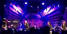 UFO are an English rock band formed in London in 1968.[3][4] They became a transitional group between early hard rock and heavy metal and the new wave of British heavy metal. The band's current lineup includes vocalist Phil Mogg, lead guitarist Vinnie Moore, rhythm guitarist and keyboardist Neil Carter, bass guitarist Rob De Luca, and drummer Andy Parker. They have gone through several line-up changes, leaving Mogg as the only constant member, and had two breaks (1983–1984 and again from 1989 to 1991). The band also featured former Scorpions guitarist and Michael Schenker Group (MSG) founder Michael Schenker, who was a member of UFO from 1973 to 1978 and rejoined the band sporadically between 1993 and 2003, when Moore replaced him. In May 2018, Mogg announced that he would retire from UFO after one last tour as a member of the band in 2019;[4][5] however, their farewell tour was set to conclude in 2022 before it was cancelled, due to Mogg's health issues.[6][7]