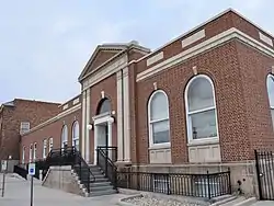The U.S. Post Office-Caldwell Main in Caldwell, Idaho, is a 1-story, Classical Revival building constructed of brick with a sandstone foundation and terracotta decorations. Established in 1932, the Post Office features a marble entry flanked by terracotta pilasters below a leaded glass fan window. The design is credited to James A. Wetmore, acting supervising architect for the U.S. Treasury. The building was added to the National Register of Historic Places in 1989.[2]