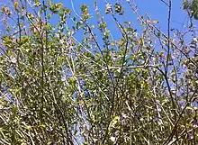 The U.S. Virgin Islands dry forest is a sub-tropical dry forest[1] spanning the United States Virgin Islands with varying degrees of coverage on each island. A dry forest is a habitat type defined by the World Wide Fund for Nature as being a predominantly deciduous forest located in a climate that is warm year-round, and may receive several hundred centimeters of rain per year, they have long dry seasons which last several months. Dry forests can receive 850-1100mm of precipitation per year.[2] In the case of the U.S. Virgin islands forest high quantities of sea salt from the ocean decreases the growth height of the trees, aiding in the creation of two canopy layers that are commonly found at an elevation below 300 meters.[3] Additionally the unique wind pattern that the islands create may have added to this effect.