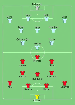 12. 1 2 "Tactical Line-ups – Spain v Turkey" (PDF). UEFA.com. Union of European Football Associations. 17 June 2016. Retrieved 17 June 2016.
