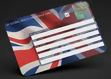 The UK Global Health Insurance Card (GHIC) is a card issued by the NHS Business Services Authority on behalf of the Department for Work and Pensions in the United Kingdom. It is issued free of charge to anyone covered by the social security system of the United Kingdom and provides evidence of entitlement to the provision of healthcare services under the UK's reciprocal healthcare agreements with the European Union, Switzerland,[1] Montenegro,[2] Guernsey and some British Overseas Territories.[3][2] It is also accepted by Australia as proof of eligibility to enrol in Medicare.[4]