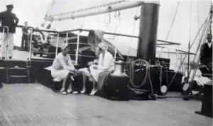- ↑ NOAA Photo Library No caption. Perhaps a dependents cruise on the Bureau of Fisheries schooner GRAMPUS. The GRAMPUS was condemned and sold in 1918.