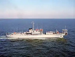 USNS Albert J. Myer (T-ARC-6) circa May 1976 before modernization.