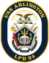 USS Arlington (LPD-24), a San Antonio-class amphibious transport dock, is the third ship of the United States Navy to be named for Arlington County, Virginia, the location of the Pentagon and the crash site of American Airlines Flight 77 during the terrorist attacks on 11 September 2001. Like her sister ships, USS New York and Somerset, she is named in commemoration of the attacks.[4] Steel taken from the Pentagon after the attacks is displayed aboard in the ship's museum.[5]