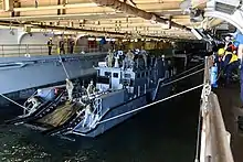 In May 2016, Bataan conducted well deck operations with the Mark VI patrol boat, demonstrating the capability to launch and dock the 85 ft patrol boat with an amphibious assault ship. This was the first time the Mark VI operated out of an LHD, and the second time it operated out of a well deck overall. [14]