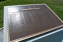 At 0600 on 26 May, Bennington began launching aircraft for the qualifications. Ten minutes later, white "smoke" emanating from Hangar Bay 1 caused Captain William F. Raborn to issue two general fire alarms[2] and within seconds a series of explosions rocked the ship when the port side catapult accumulator burst and released vaporized lubricating oil which was detonated by some unknown heat source.[2] Though severely damaged internally, the warship managed to launch the entire air group and send it into Quonset Point, Rhode Island. She also maintained way on and headed back to Quonset Point while damage control, fire, and rescue parties worked feverishly to control fires, to rescue the injured, and to recover the dead.[2] The most severely injured men were carried to Quonset Point in a helicopter lift, and Bennington dropped the remainder off there before heading to New York for extensive repairs. The explosion cost her 103 officers and men dead and over 200 others injured, most of them severely burned, the second highest casualty count in the post-war peacetime U.S. Navy.[2][3] A memorial to the sailors who died in the explosion was erected in 2004 at Fort Adams State Park in Newport, Rhode Island.[1]