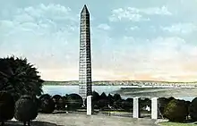 The number of dead also taxed the morticians in San Diego, who were hard-pressed to prepare all of the victims for burial. On 23 July, two days after the explosion, the majority of those killed were buried in the cemetery at Fort Rosecrans.[19][20] The victims are commemorated by the USS Bennington Monument, a 60-foot (18 m) granite obelisk dedicated in the cemetery on 7 January 1908.[17][21]