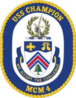 USS Champion (MCM-4), an Avenger-class mine countermeasures ship, is the fourth U.S. Navy ship of that name.