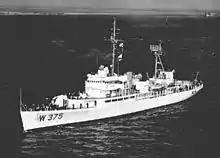 USCGC Chincoteague (WAVP-375) in 1964, before the Coast Guard's adoption of the "racing stripe" markings on its ships.