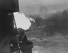 Denver sailed from Philadelphia on 23 January 1943, and arrived at Efate, New Hebrides on 14 February. Thomas Darden was in command.[2] The new cruiser first saw combat in the bombardment of Vila on Kolombangara in the Solomon Islands, on 6 March. During this action her force engaged and sank the Japanese destroyers Minegumo and Murasame in the Battle of Blackett Strait. Continuing her operations in the Solomons, Denver joined the bombardment of Ballale Island on 29–30 June in conjunction with the invasion landings on New Georgia, then remained in the area on patrol.[1]