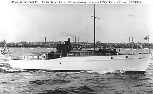 ![]() Doris B. III as a civilian motorboat sometime between 1912 and 1917 | |