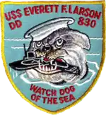 USS Everett F. Larson (DD/DDR-830) was a Gearing-class destroyer of the United States Navy, named for Private First Class Everett F. Larson (1920–1942) who was killed in the Guadalcanal campaign.