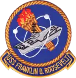 USS Franklin D. Roosevelt (CVB/CVA/CV-42) was the second of three Midway-class aircraft carriers. To her crew, she was known as "Swanky Franky," "Foo-De-Roo," or "Rosie," with the last nickname probably the most popular. Roosevelt spent most of her active deployed career operating in the Mediterranean Sea as part of the United States Sixth Fleet. The ship was decommissioned in 1977 and was scrapped shortly afterward. She was the first aircraft carrier of the United States Navy to be named in honor of a president of the United States.