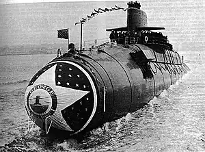 ![]() USS George Bancroft (SSBN-643), probably during her sea trials off the coast of New England in late 1965. | |