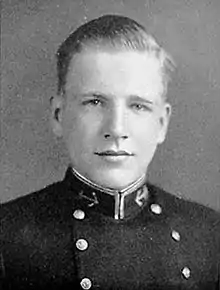 He was killed during the Battle of Midway by machine gun fire from a crippled F4F Wildcat fighter from the USS Yorktown which was making an emergency landing on board the Hornet. Its wounded pilot was either unable to, or failed to, cut off its guns. Four enlisted men were also killed and 20 more sailors were wounded in this accident.[1]
