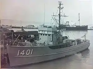After shakedown training out of San Diego, California, PCS-1401 reported for duty with the West Coast Sound Training Squadron at San Diego 25 March 1945. During the closing months of World War II she operated off southern California training men in antisubmarine warfare sonar techniques. She had similar duty out of San Diego over the next decade, joining Service Squadron 1 in November 1954.