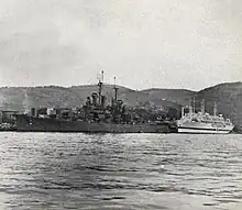 With the war over, Mobile left San Pedro Bay in the Philippines on 20 August, bound for Okinawa to join the forces available for occupation duty. She made several cruises between Okinawa and the Japanese Home Islands in September, carrying prisoners of war who had been liberated after the surrender of Japan. In October, she operated off Sasebo, and on 18 November, she departed Japanese waters with a contingent of sailors and marines aboard, bound for San Diego, California, the first of two Operation Magic Carpet voyages she would make. She arrived there on 2 December and then made her second trip, after which she went to Puget Sound to be laid up. She was decommissioned on 9 May 1947 and allocated to the reserve fleet based in Bremerton, Washington, where she remained until 1 March 1959. She was struck from the Naval Vessel Register that day and was sold to ship breakers on 16 December, and was eventually towed away to the breakers' yard on 19 January 1960.[3]