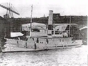 The first USS Narkeeta (YT-3), was known as Steam Tug #3. She was laid down in April 1891 by the City Point Iron Works, Boston, Massachusetts; launched on 11 February 1892; accepted by the Navy at the Navy Yard, Boston, on 12 March 1892; and commissioned 14 April 1892.