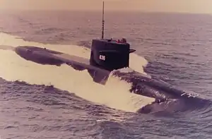 ![]() USS Nathanael Greene (SSBN-636), probably during her sea trials off New England in the mid-1960s. | |
