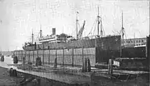 On 25 November 1919 Pretoria was transferred from the US Navy to the United States Shipping Board.[12] Later she was transferred to the UK Shipping Controller, who contracted Ellerman Lines to manage her.[3] In the first week of January 1920 in New York Harbor she suffered three fires in as many days. The third was on 4 January, when she was moored at Staten Island Pier waiting to sail in cargo. The fire broke out in her forward hold, and caused damage estimated at $100,000.[19]