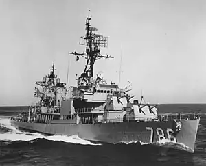On 9 March 1948, she sailed for Pearl Harbor; conducted two weeks of anti-submarine warfare (ASW) exercises there; then continued across the Pacific for duty with the 7th Fleet. In April, she arrived at Tsingtao, China, then shifted to Buckner Bay, Okinawa, for further exercises. In mid-May she was back in Chinese waters. Duty at Tsingtao and Shanghai was followed by visits to Hong Kong and Manila and during late August and early September a return to China. On 12 November she sailed for California, arriving on the 26th. In March 1949, the destroyer took part in Aerobee guided missile tests at the magnetic equator. Five months later, she again sailed west for duty with the 7th Fleet. Operating primarily in the Philippines during that tour, she visited Saigon, Indochina, 16–23 March 1950, and witnessed operations of Viet Minh forces against French authorities.