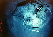 Photographs of the Scorpion wreck show the submarine's detached shaft and propeller, missing a rotor blade. Some experienced U.S. submariners attribute the loss of the submarine to flooding caused by the detached shaft.[32][33] Given that antisubmarine torpedoes were designed to seek the sound of the cavitation of the target submarine's propeller, this could be damage caused by such a weapon.[34]