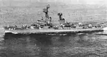 | Armament | 3 x 5 in (127 mm)/54 calibre dual purpose Mk 42 guns; 4 x 3 in (76 mm)/50 calibre Mark 33 anti-aircraft guns; 2 x mark 10/11 Hedgehogs; 6 x 12.75 in (324 mm) Mark 32 torpedo tubes. |