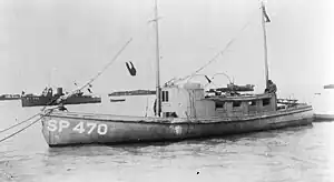 ![]() USS St. Sebastian (SP-470) sometime between 1917 and 1919. The patrol boat USS War Bug (SP-1795) is in the left background. | |