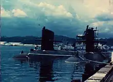 Early in May 1977, Tautog made a liberty call at Hong Kong and then returned to Subic Bay on the 18 May.[1] Special operations occupied her time in late May and June. On 3 July 1977, she arrived back at Pearl Harbor[1] and upon return, preparations were made for the transit to Vallejo, California, where Tautog would undergo its second major overhaul and receive a new reactor core. In December 1977, she entered Mare Island Naval Shipyard and the overhaul commenced.