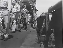 Japanese approaching Tillman in preparation for the surrendering of Yap Island