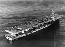 Her construction was awarded to Kaiser Shipbuilding Company, Vancouver, Washington under a Maritime Commission contract, on 18 June 1942. The escort carrier was laid down on 5 January 1944 under the name Windham Bay, as part of a tradition which named escort carriers after bays or sounds in Alaska.[6] She was laid down as MC hull 1129, the thirty-eighth of a series of fifty Casablanca-class escort carriers. She therefore received the classification symbol CVE-92, indicating that she was the ninety-second escort carrier to be commissioned into the United States Navy. She was launched on 29 March 1944; sponsored by Mrs. Henry M. Cooper; transferred to the Navy and commissioned on 3 May 1944, with Captain Charles William Oexle in command.[1][7]