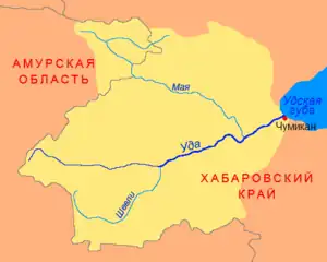 The Uda (Russian: У́да,[1][2] Chinese: 乌第河) is a river in Khabarovsk Krai, in the Russian Far East. It is 457 kilometres (284 mi) long, and has a drainage basin of 61,300 square kilometres (23,700 sq mi).[3]