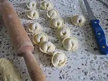 Dumplings (pelmeni) are the most well-known Udmurt national dish, and in Udmurt are called pelnan, which means "ear bread"[4] (пельнянь: пель − ear, нянь – bread). This "ear-bread"[5] is made using various fillings that range from mushrooms and berries to meat and cabbage. Pelmeni-making has traditionally been an autumn task. They are prepared in large quantities, preserved in the cold, and then eaten over the course of the winter.