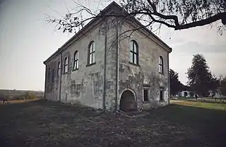 The Herăști building impressed a foreign traveler, Paul of Aleppo, who claimed that no other such home existed in the Danubian Principalities, and nowhere in Europe except the Kingdom of France.[72] Paul was also perplexed that the monument was built so close to the Danube, in an exposed location on the Wallachian Plain, which could allow it to be ransacked by Ottoman invaders.[73] It is however known that Năsturel kept a second such home, in Transylvania,[22] alongside his lesser residences in Târgoviște and Bucharest. He and Elena co-funded the church in Herăști, with Udriște alone being the ktitor of Târgului Church in Târgoviște.[74] The former building was partly designed by a Mamant Barbulov, possibly a naturalized Bulgarian, who may have added the Oriental brickwork to the nearby palace.[75] Năsturel is also listed as a ktitor of Sfânta Vineri Herasca in Bucharest, which was located close to his townhouse.[76] In fact, he and Elena supported financially rather than built the latter.[77][78]