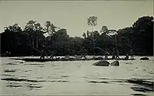 In 1894 Léon Hanolet ascended the Bari River, a right tributary of the Bomu while Théodore Nilis and Charles de la Kethulle ascended the Chinko River, another tributary of the Bomu.[15] The Belgian expeditions caused a dispute with the French that led to an agreement that the Bomu would be the northern border of the Congo Free State in this region.[18] Another route to the Uele went from Basoko up the Aruwimi River to Bomili, then up the Nepoko River, across to the Duru post on the Bomokandi River, and on to the Dungu post. Much of this route was by foot, since the rivers were impassible.[17] In 1895 Aruwimi-Uele District was divided into Aruwimi District and Uele District.[11]