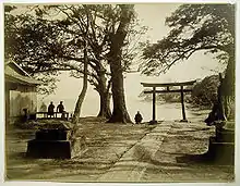 Ueno himself taught many important nineteenth-century photographers, including Uchida Kuichi (1844–1875), Tomishige Rihei,[lower-alpha 8] [7] Kameya Tokujirō,[lower-alpha 9] [7] (1837–1922), Nakajima Shinzō, Nagai Nagayoshi, Noguchi Jōichi, Nakajima Seimin, Tanaka, Morita Raizō, Kikizu Maturoku, and Ueno Yoshima. Ueno maintained a close relationship with Uchida, and following the latter's trip to Nagasaki in 1872 while photographing for the Emperor Meiji their albums include several identical images that they presumably exchanged.[8] Eventually, Ueno opened branches of his photographic studio in Vladivostok in 1890 and in Shanghai and Hong Kong in 1891.