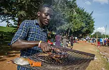 Chicken, pork, fish (usually fresh, but there is also a dried variety, reconstituted for stewing),[1] beef and goat[1] are all commonly eaten, although among the rural poor, meats are consumed less than in other areas, and mostly eaten in the form of bushmeat. Nyama is the Luganda language word for "meat".
