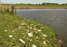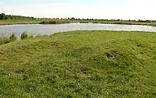 Southern slope of the keep by the present-day pond. 2004 stone reinforcement to prevent erosion